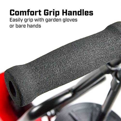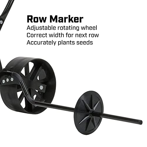 • CONSTRUCTION: durable. powder-coated steel frame with cushioned handle grips and poly seed hopper