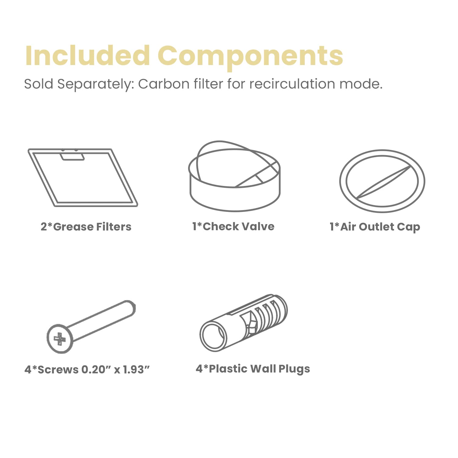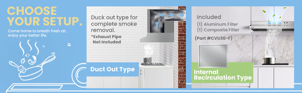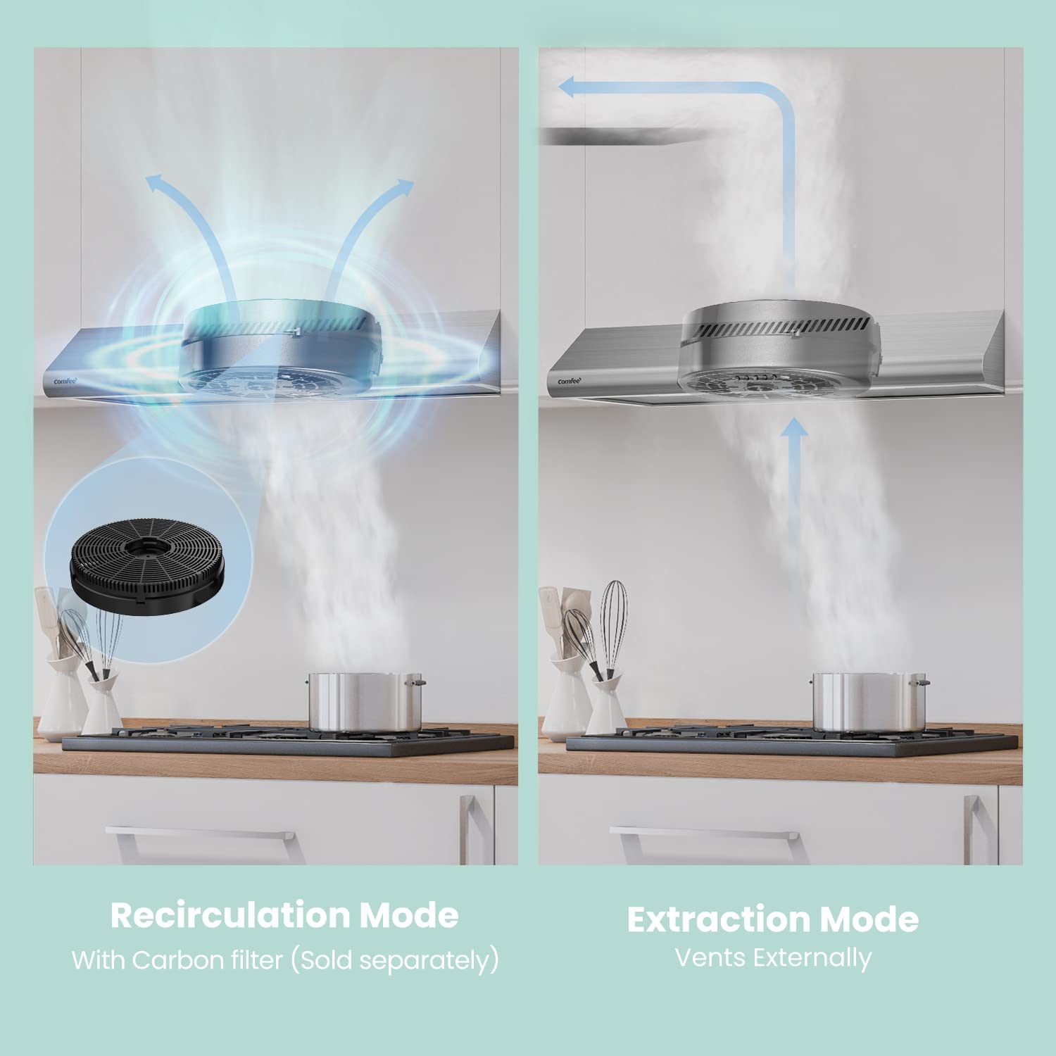 • Dual Installation Mode & Ideal Size The stainless steel thin bodies and ideal sizes fit your cabinet perfectly and save space. and it can be installed in exhaustion mode and recirculation mode.
