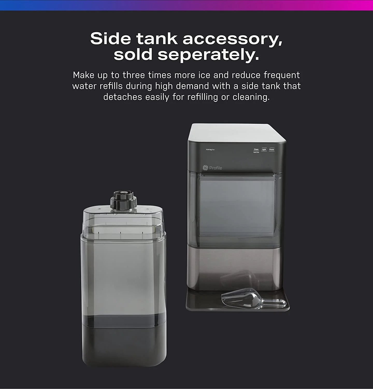 Innovative design avoids clumping and leaks by recirculating ice melt to the water reservoir. You'll always have fresh ice on hand thanks to a smart. automatic ice maker that refills when your ice is running low.