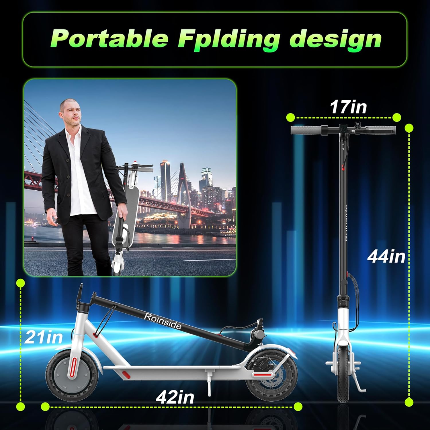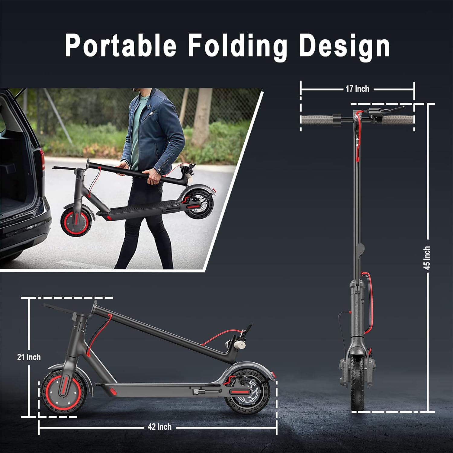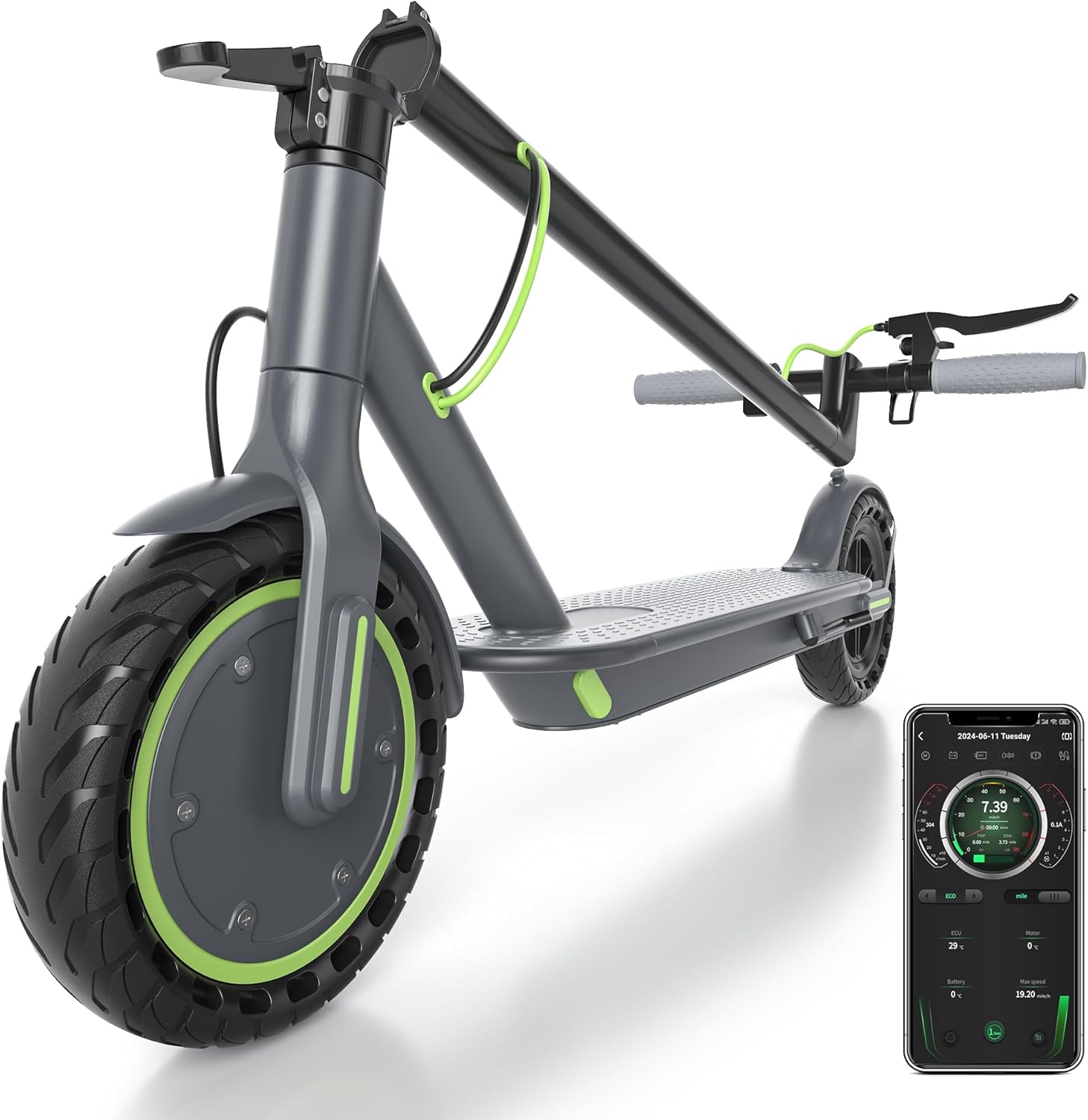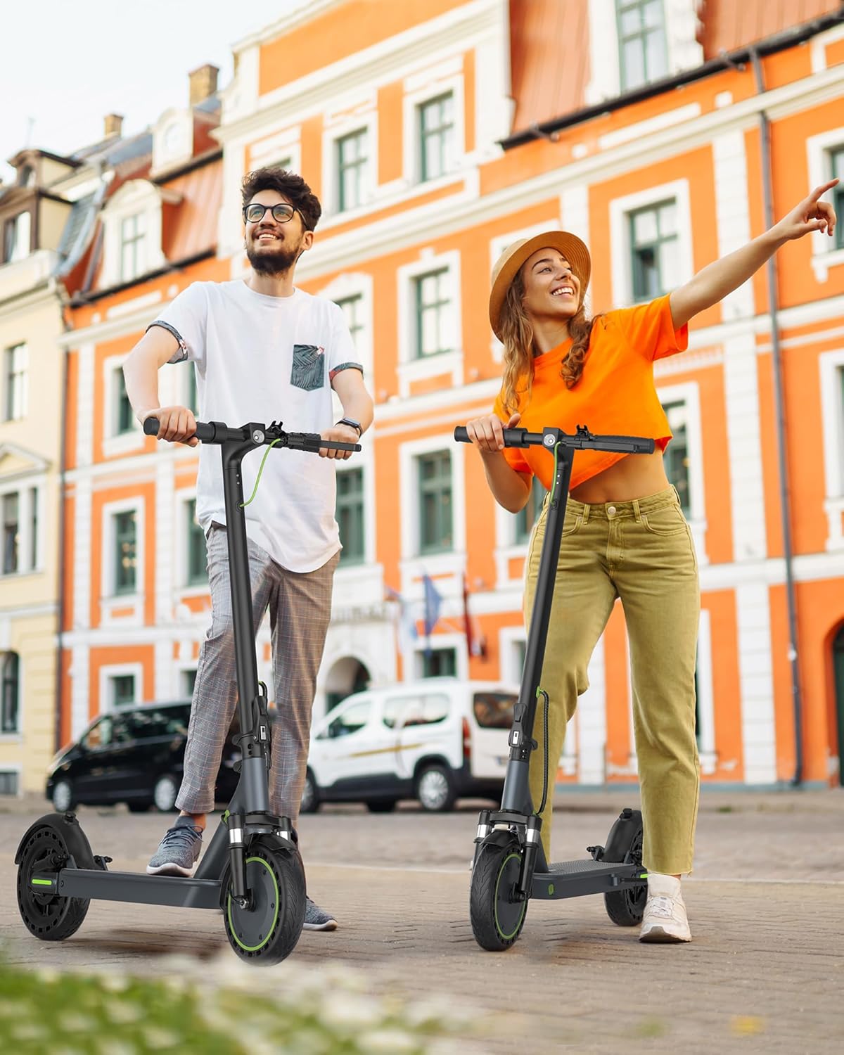 • Electric Scooter - 8.5" Solid Tires, 350W Motor, Up to 19 MPH and 21-23 Miles Long-Range Portable Foldable Commuting Scooter for Adults with Double Braking System and App