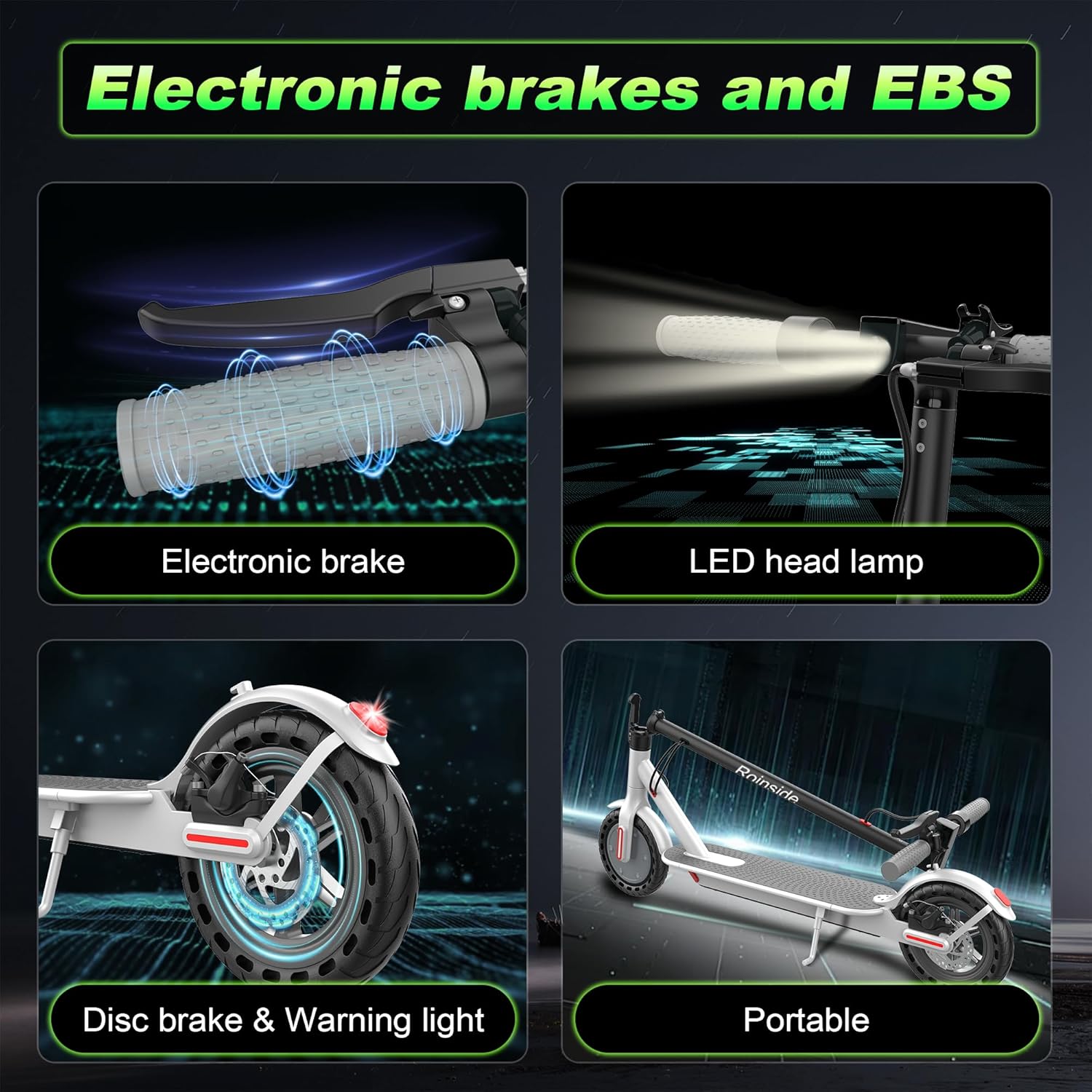 • POWERFUL BRAKE SYSTEM 500W stronger brushless motor provides and double braking system featuring with a disc braking and EABS regenerative anti-lock braking. Sturdy aluminium alloy material for riding in security.