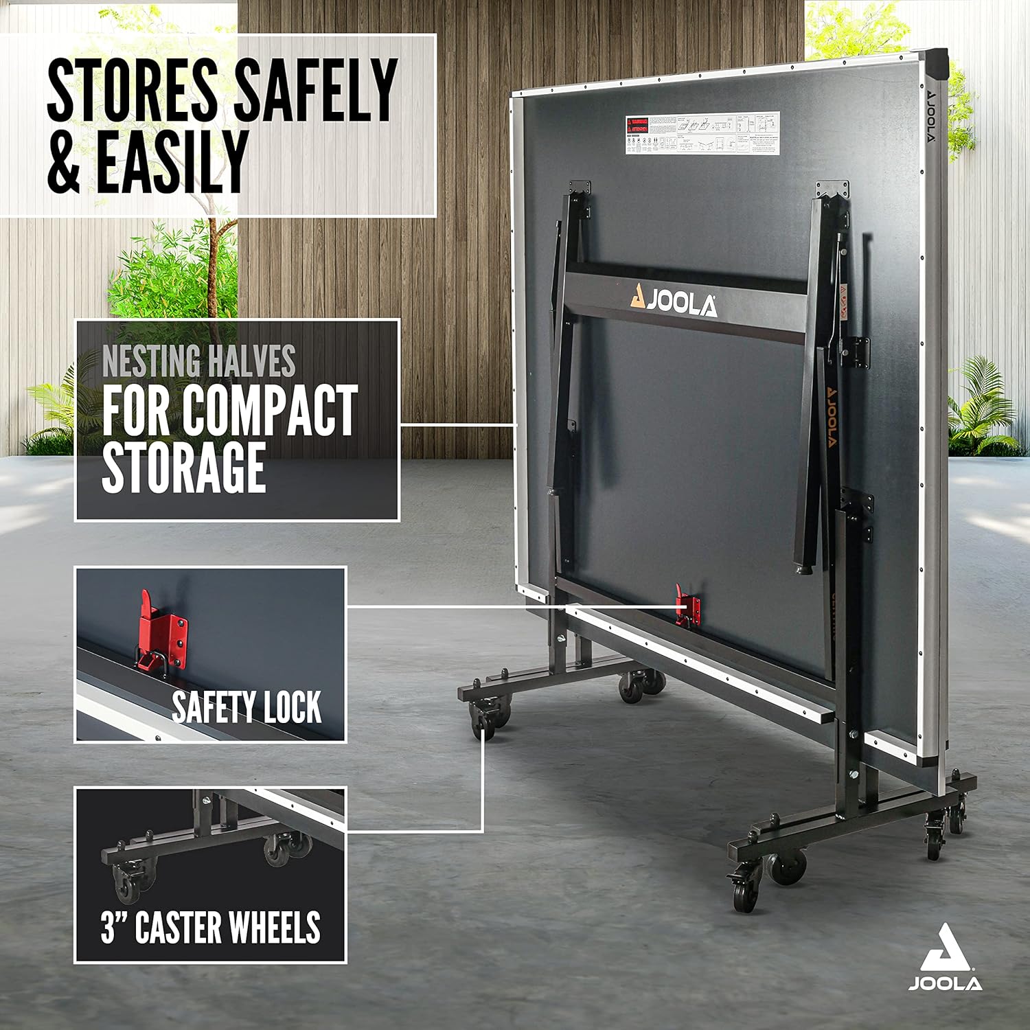 • SAFE. MOBILE. COMPACT STORAGE: The 2 halves and 3" lockable wheels and casters makes this ping pong table easy to roll and move around when not in use. Can be used as an outdoor ping pong table on a clear. sunny day. Does not include ping pong paddles