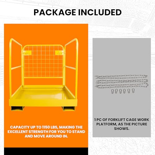 KUAFU 36x36 Forklift Safety Cage Heavy Duty Steel Forklift Man Basket 1200 LBS