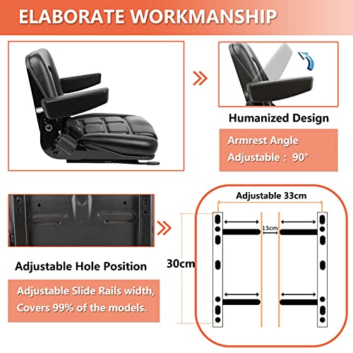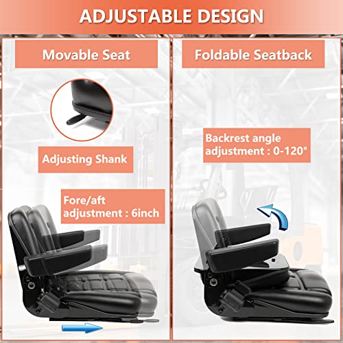 • 【Applicable scene】:This seat is designed for most of heavy mechanical seat. such as fork lifts. dozers. aerial lifts. floor scrubbers. riding mowers. tractors. excavator and trenchers.