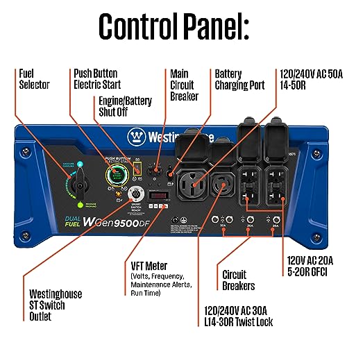 - Powered by a Heavy Duty 457cc Westinghouse 4-Stroke OHV Engine Featuring a Long-Lasting Cast Iron Sleeve With Automatic Low Oil Shutdown and Digital Hour Meter. VFT display gives you real time updates with the voltage output. frequency. and lifetime hours