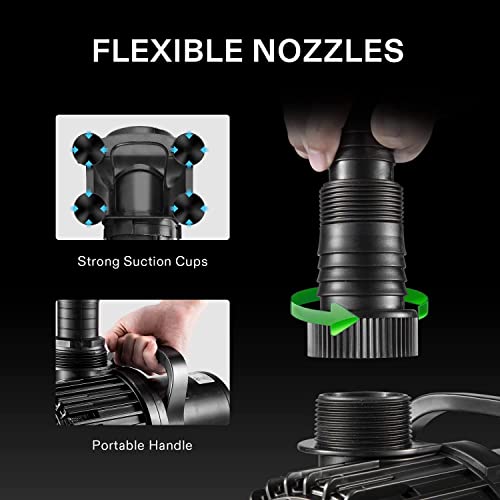 • High Lift with Detachable Filter: Lift height can be up to 14FT/4.2M; This pump can more than accommodate your water features with portable handle and detachable filter