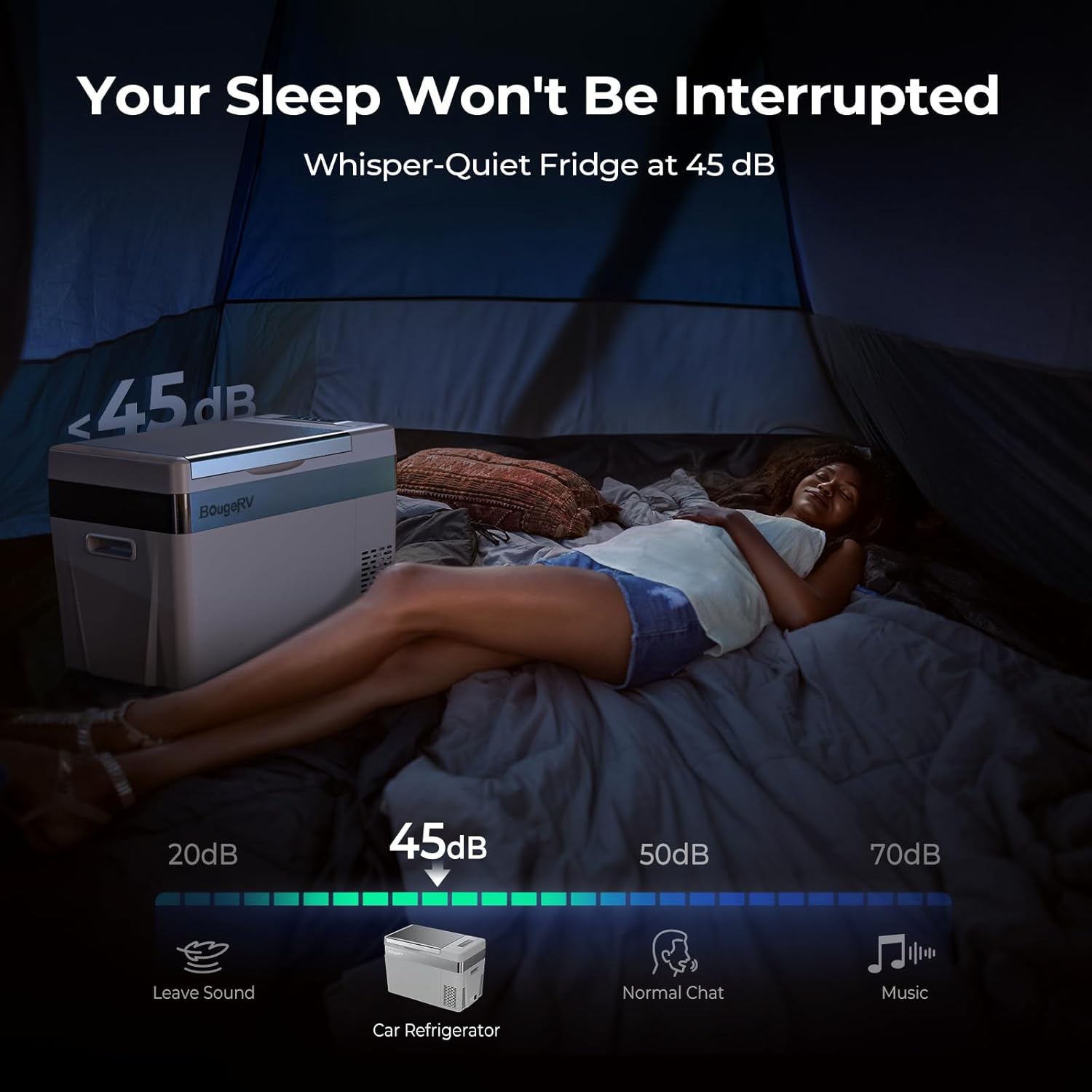 - 45dB Low Noise: The truck freezer is designed to run with low noise to make sure you have a good sleep after long driving. This camping fridge also has a shock-proof design to face the uneven road. operating with no problem in case of a 30 ° inclination when you are off-road