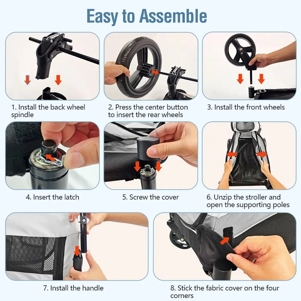 • 100% Collapsible large pet stroller for space-saving design