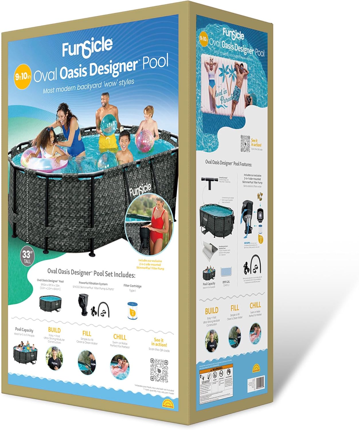 • Funsicle 167 by 98 by 39.5 Inches Oasis Designer Oval Frame Outdoor Above Ground Swimming Pool Pool Set with Accessories, Dark Herringbone Gray