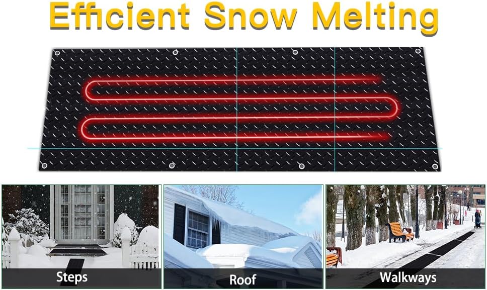 • Wide Application: This snow melt mat is suitable for most surfaces including concrete. asphalt. wood. decks and more. Keeps your stairs. roofs. doorways. ramps and steps free from snow and ice.