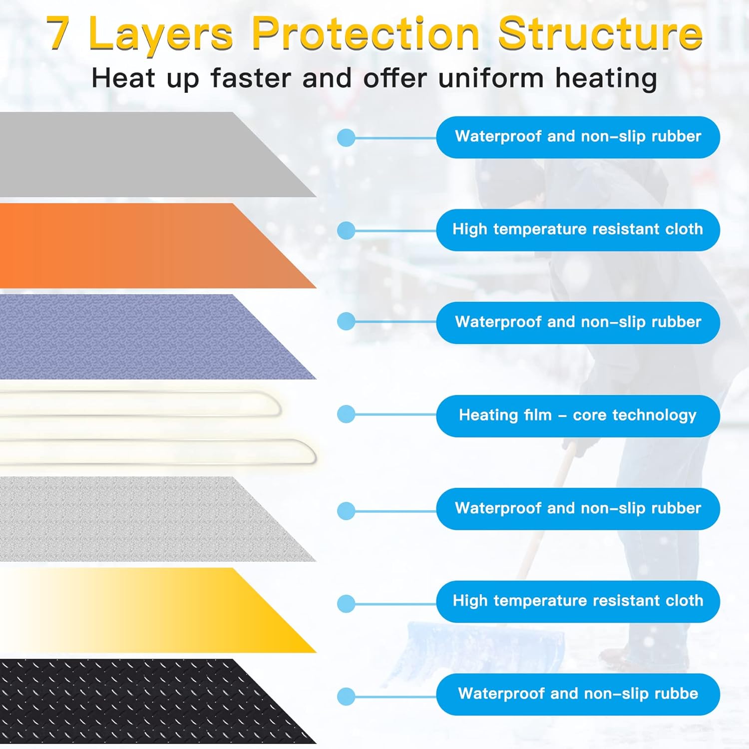 • High Quality Material: This outdoor pedestrian heating mat is made of rubber. which is waterproof and non-slip. It is the best solution for winter anti-slip and helps prevent the risk of slips and falls due to snow and ice accumulation.