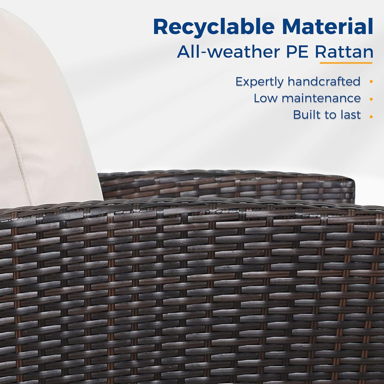 • 【Durable and Long-lasting Outdoor Patio Furniture】Experience the durability and reliability of this 4-piece patio furniture set. Crafted with premium PE rattan and a sturdy powder-coated steel frame. it is built to withstand any weather condition. ensuring years of outdoor enjoyment. Whether you have a balcony. lawn. garden. or poolside. this set is perfect for all outdoor spaces.