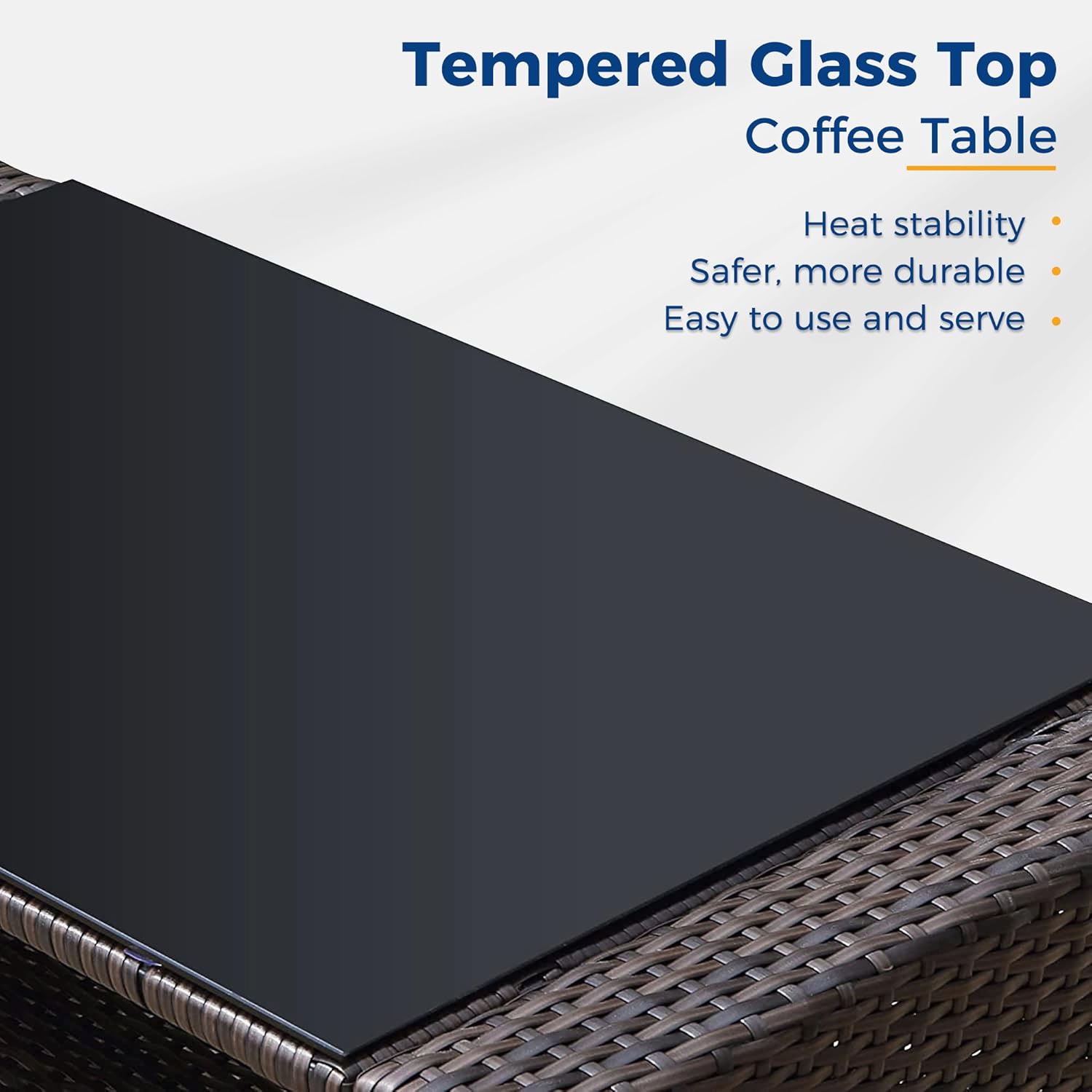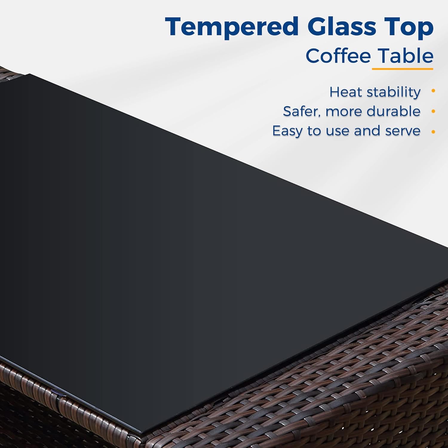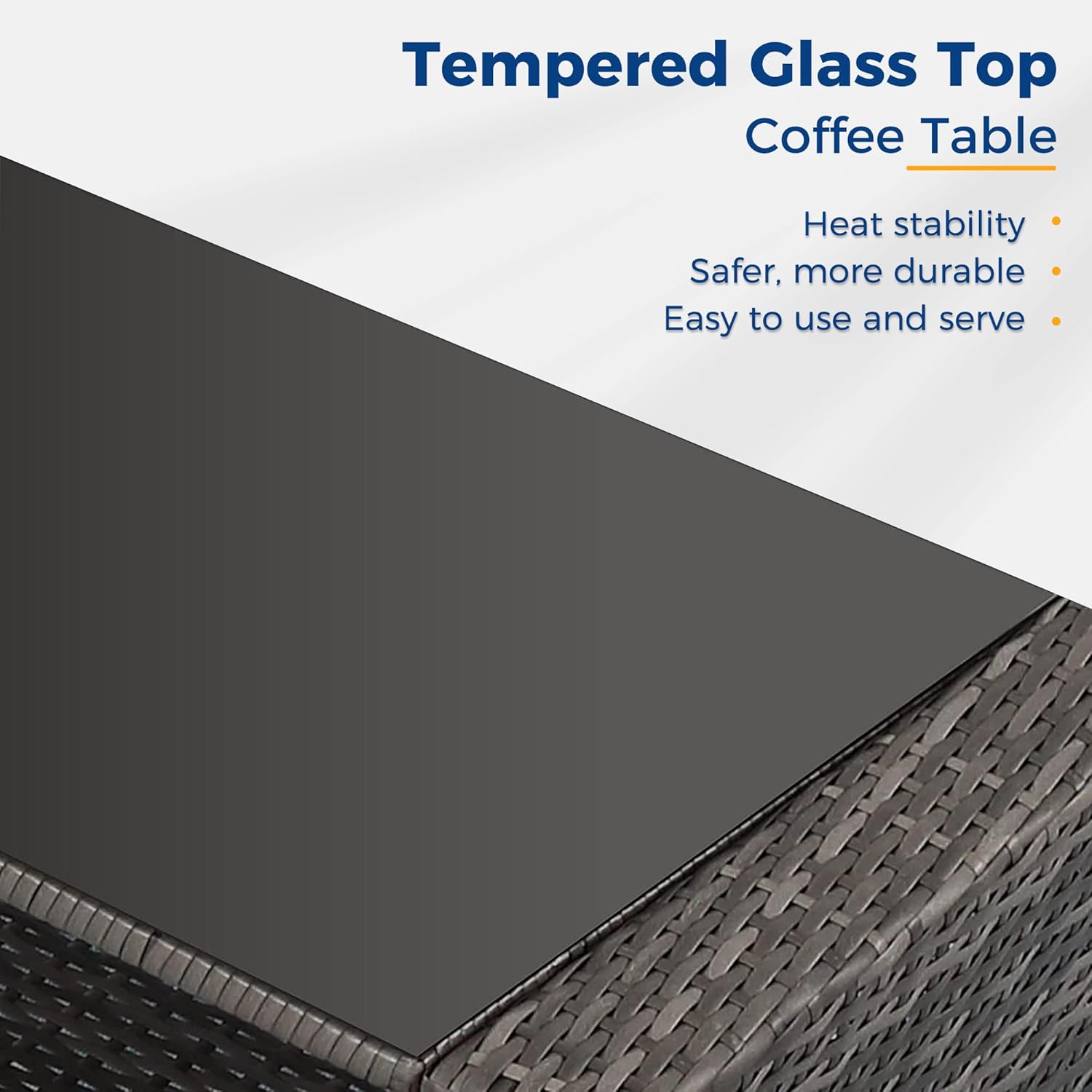 • 【Easy to Maintain】Cleaning and maintaining this patio furniture set is a breeze. The cushion covers can be easily removed with the zipper design. allowing for convenient cleaning. The splash-proof material ensures hassle-free maintenance. Additionally. the tempered glass top of the coffee table can be cleaned by simply soaking a towel in fresh water. For tough stains. soak the towel in water at 100°F for effective cleaning.