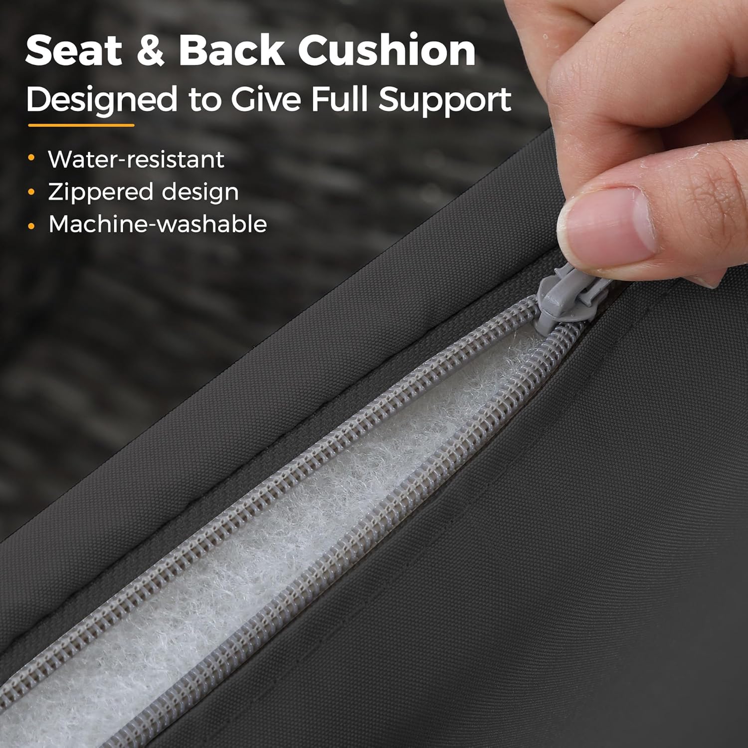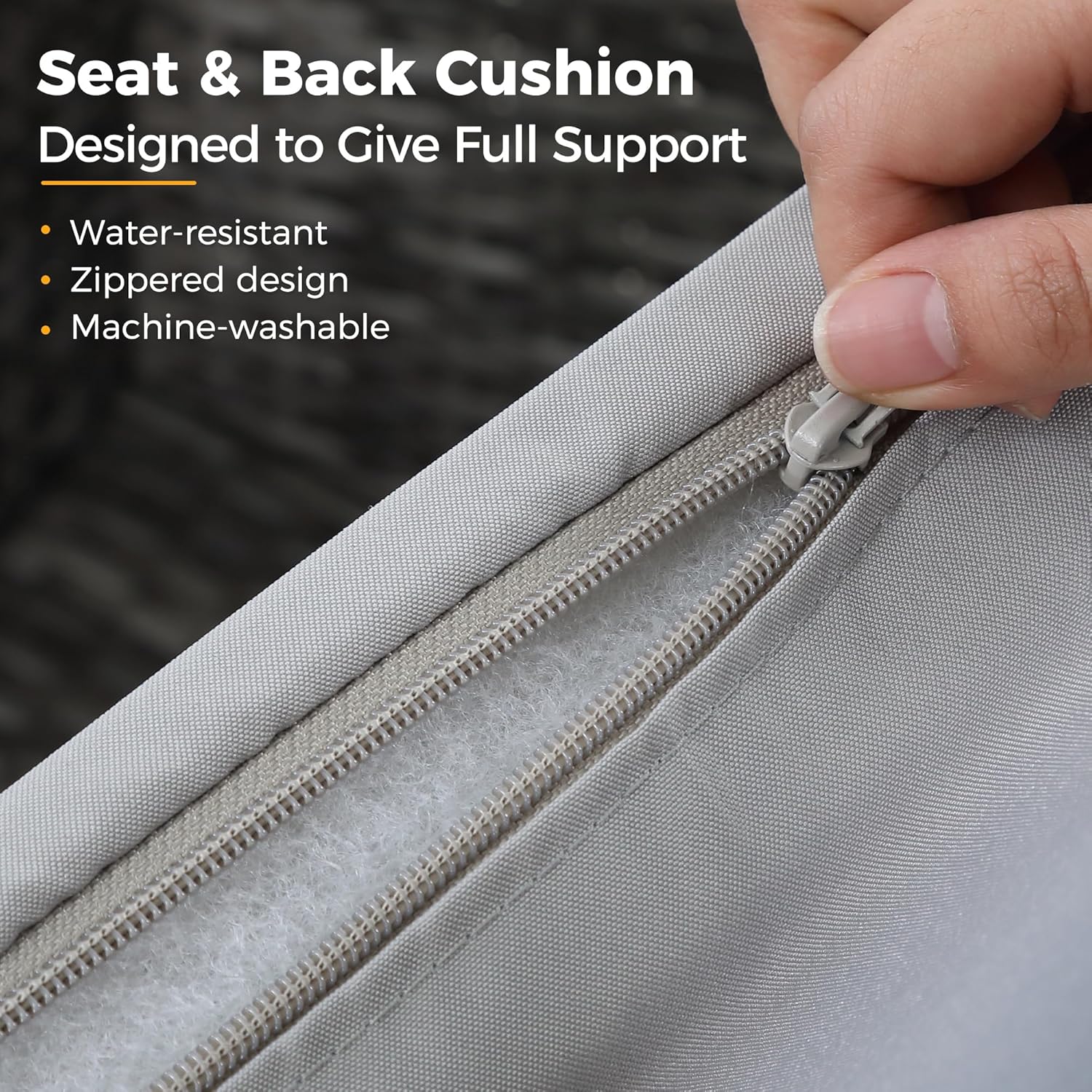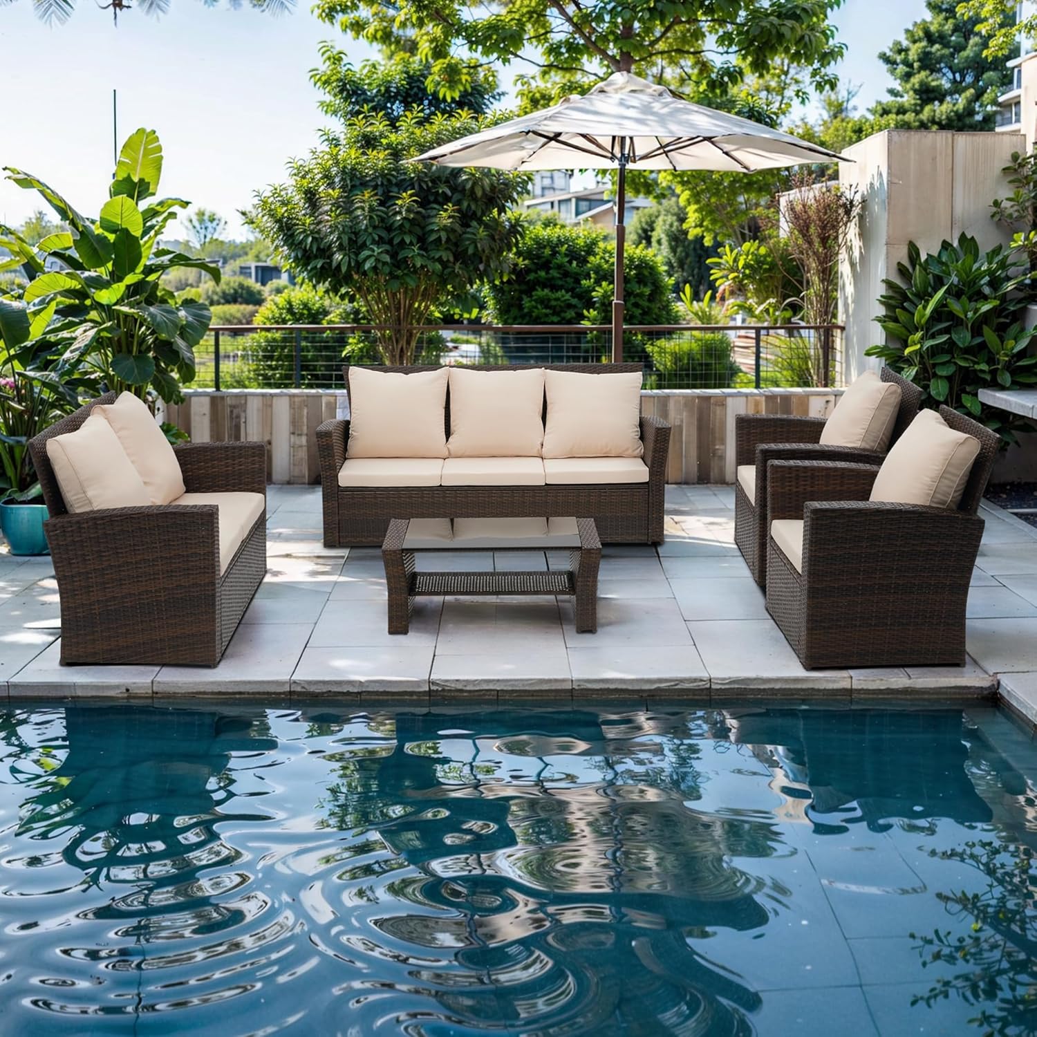 • 【Easy to Maintain】Cleaning and maintaining this patio furniture set is a breeze. The cushion covers can be easily removed with the zipper design. allowing for convenient cleaning. The splash-proof material ensures hassle-free maintenance. Additionally. the tempered glass top of the coffee table can be cleaned by simply soaking a towel in fresh water. For tough stains. soak the towel in water at 100°F for effective cleaning.